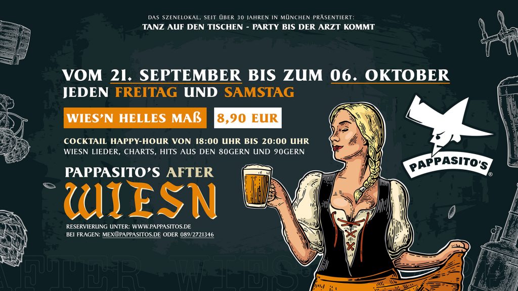 Neben dem regulären Wochenprogramm präsentiert sich das Pappasito’s auch anlässlich verschiedener Events als hervorragende Partylocation in München oder auch für eine Firmenfeier. Ob zu Sylvester, Fasching, Halloween oder sonstigen Ereignissen – wir bieten Ihnen nicht nur leckeres, mexikanisches Essen in München, sondern auch die passende Atmosphäre um ausgelassen zu feiern und einen Abend im Kreis von Familie, Freunden oder Kollegen rundum zu genießen.